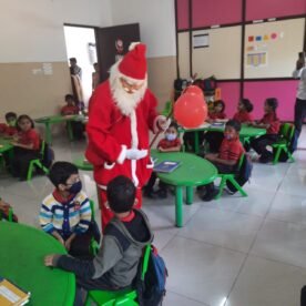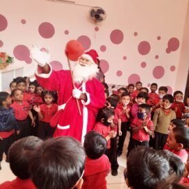 Christmas is for joy, for giving and sharing, for laughter, for coming together with family and friends. It was surely a Christmas to remember in our School. The school wore a festive look with bells, streamers and a beautifully decorated Christmas tree. The essence of Christmas came alive when Santa Clause himself went into the classes.The boundless joy of celebrating the festival was amply visible on the faces of the children especially when Santa moved around distributing chocolate to them.’